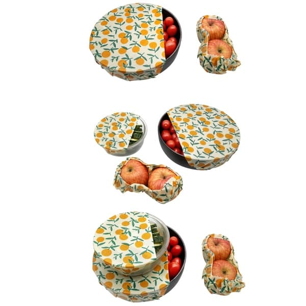 Each set includes three different sizes, giving you the flexibility to cover anything from small snacks to larger bowls and plates. Crafted with organic cotton, ethically harvested beeswax, jojoba oil, and tree resin, these wraps are non-toxic, biodegradable, and safe for direct food contact. Their natural composition allows them to mold easily with the warmth of your hands, creating an airtight seal that locks in freshness and flavor.