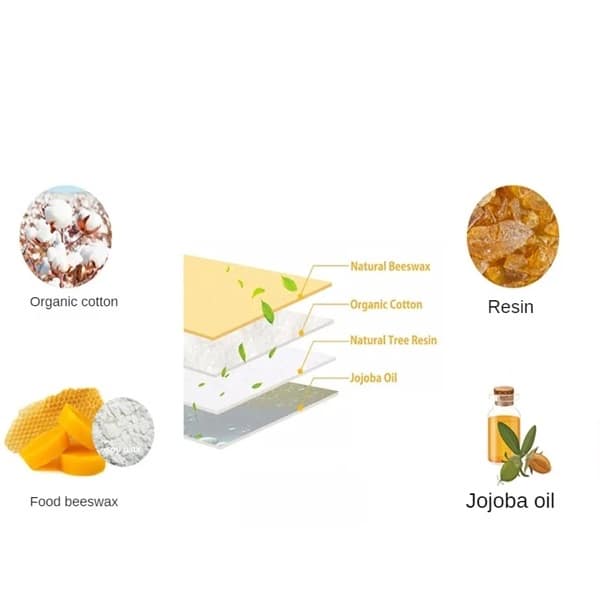 Made from organic cotton, beeswax, jojoba oil, and tree resin