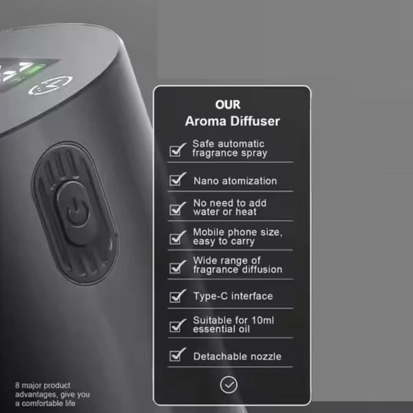 Enjoy effortless aromatherapy and a fresh, inviting atmosphere anywhere with our car essential oil diffuser — the perfect blend of technology, design, and wellness.