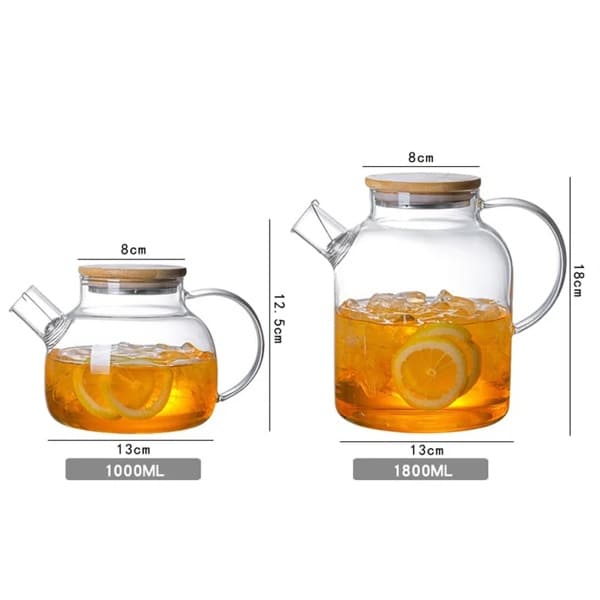 The eco-friendly bamboo lid adds a natural touch, creating a seamless harmony between glass and wood. The lid fits snugly to prevent spills, while the ergonomic spout and handle make pouring effortless and drip-free. Available in two convenient sizes – 1000ml and 1800ml – this glass teapot suits both personal relaxation and entertaining guests.