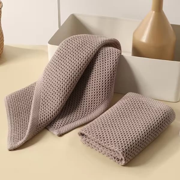 Each dishcloth features a waffle weave honeycomb pattern that enhances both texture and function. This unique design allows for excellent air circulation, quick drying, and high absorbency — effortlessly soaking up spills and moisture. The cotton fabric feels soft to the touch, making it gentle on cookware, plates, and glassware while remaining durable enough for everyday use.