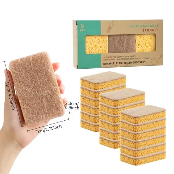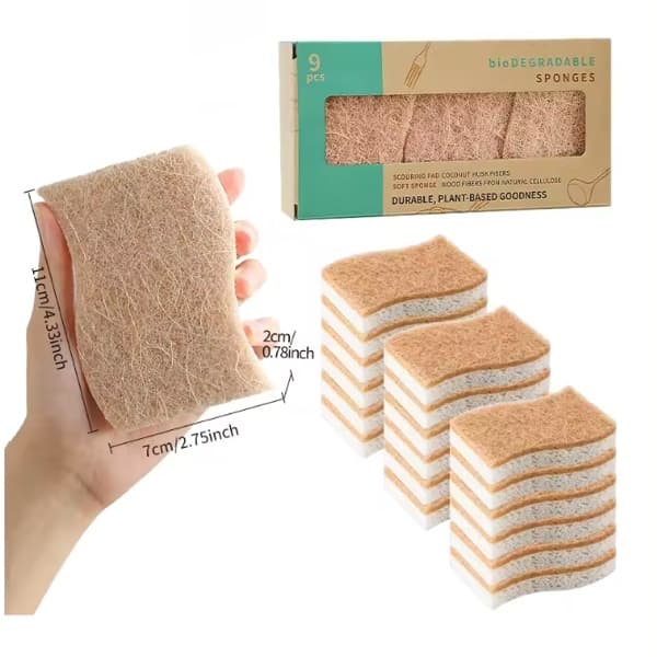 With a size of 11 x 7 x 2 cm, each sponge is compact, lightweight, and easy to use. The 9-pack set ensures you always have a fresh sponge ready, making it ideal for long-term household use. Packaged beautifully, it’s also a thoughtful and practical gift for eco-conscious families or friends looking to create a more sustainable home.