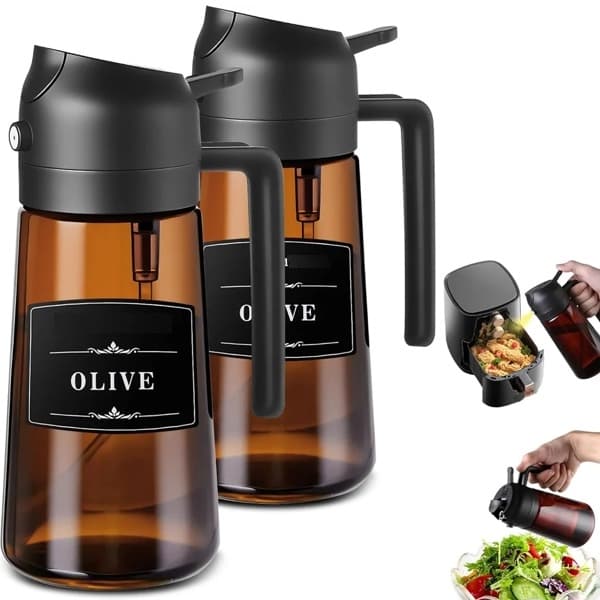 Upgrade your kitchen with this 2-in-1 oil glass bottle dispenser, a practical and elegant solution for everyday cooking, grilling, and salad preparation. Designed with functionality and style in mind, this dispenser allows you to both pour and spray your favorite oils with ease—perfect for home chefs who appreciate precision and convenience.